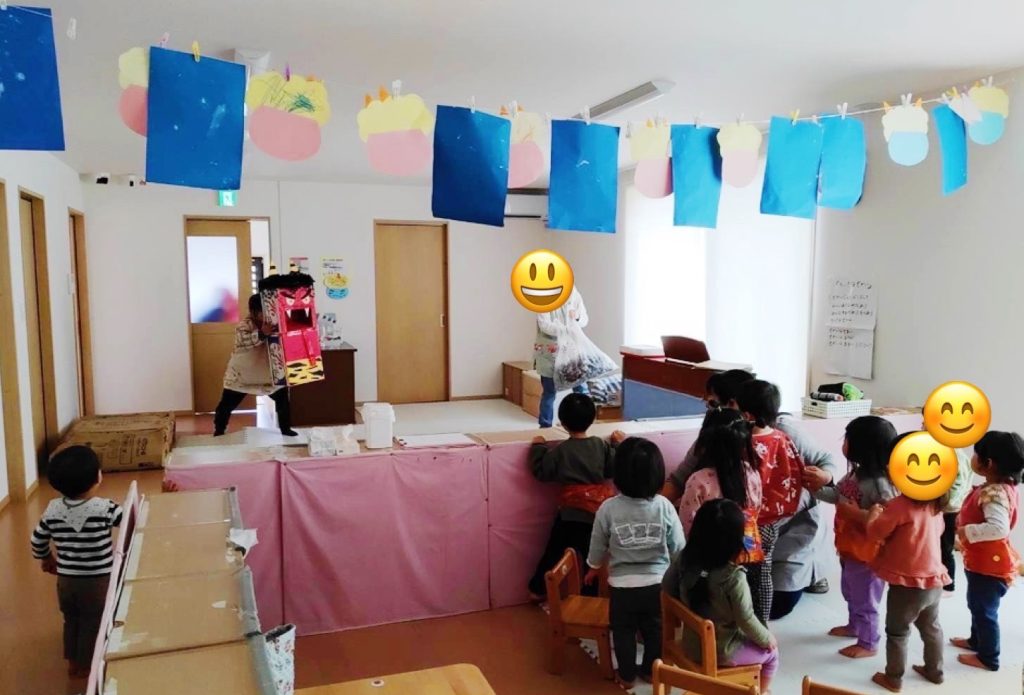 お知らせ「鬼がこっちを見てる!」と、不安そうな顔をして保育者に言いに来る子がいました。