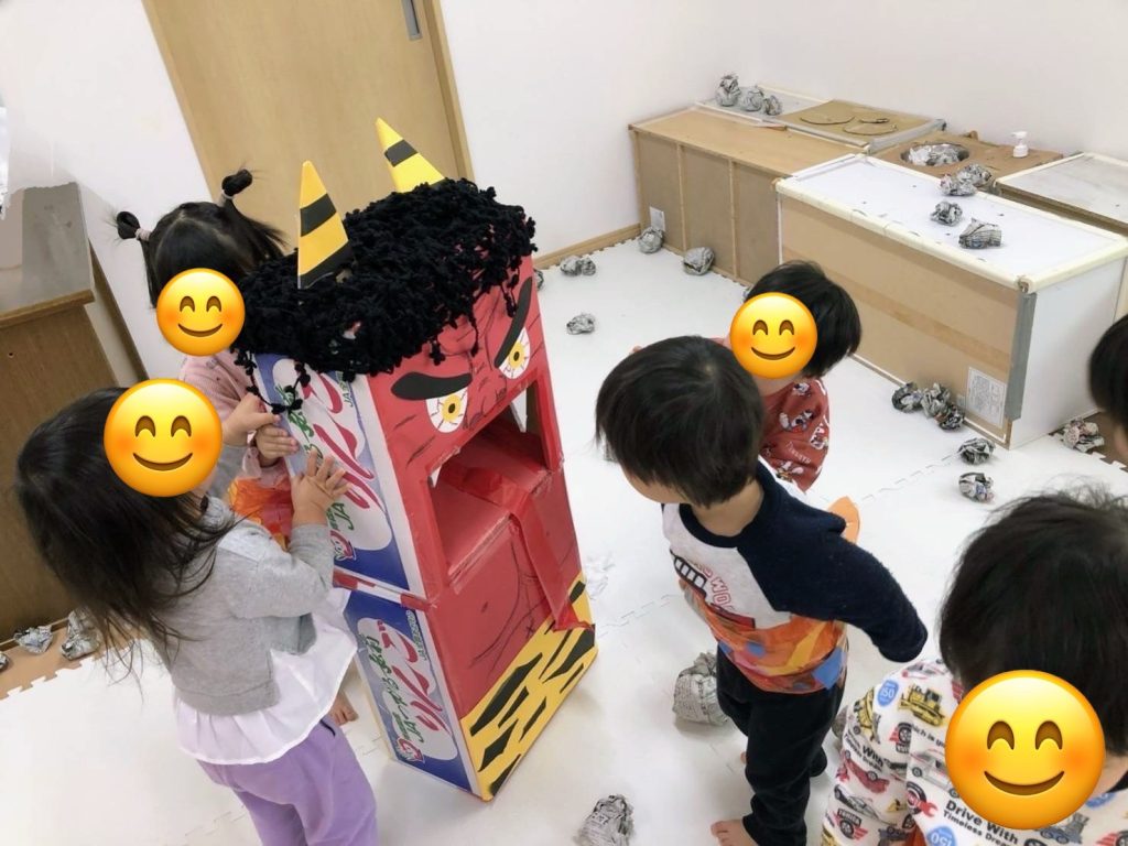最後は、お友達や保育者と一緒に鬼をやっつけることができました!
